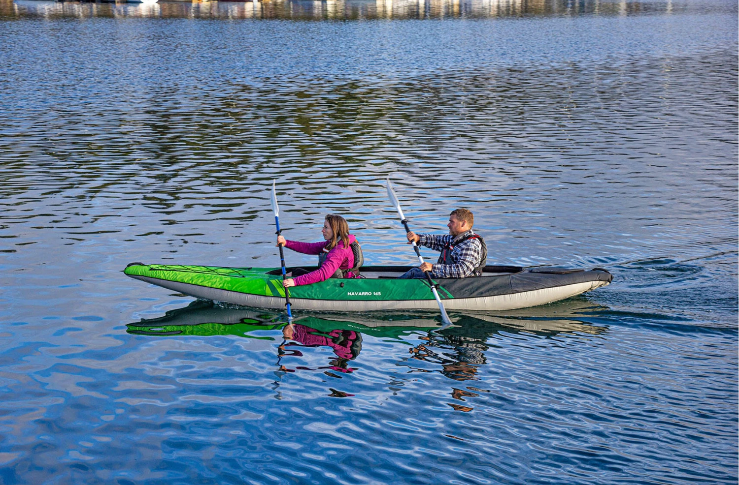 Introducing the Navarro 145 Inflatable Kayak from Aquaglide. The Navarro 145 is perfect for recreational touring that is built and design with stability and durability in mind offer user as intermediate cross-over touring boat to get you out on the waters in all-weather. The tight cockpit offers spray protection for you and all gear and complete with deck bungees upfront for securing dry bags, and what you see fit. The Navarro 145 is a spacious 2-person, 1-child kayak, with cockpit drain, d-rings, paddle holders and even you get a quick-release fin.