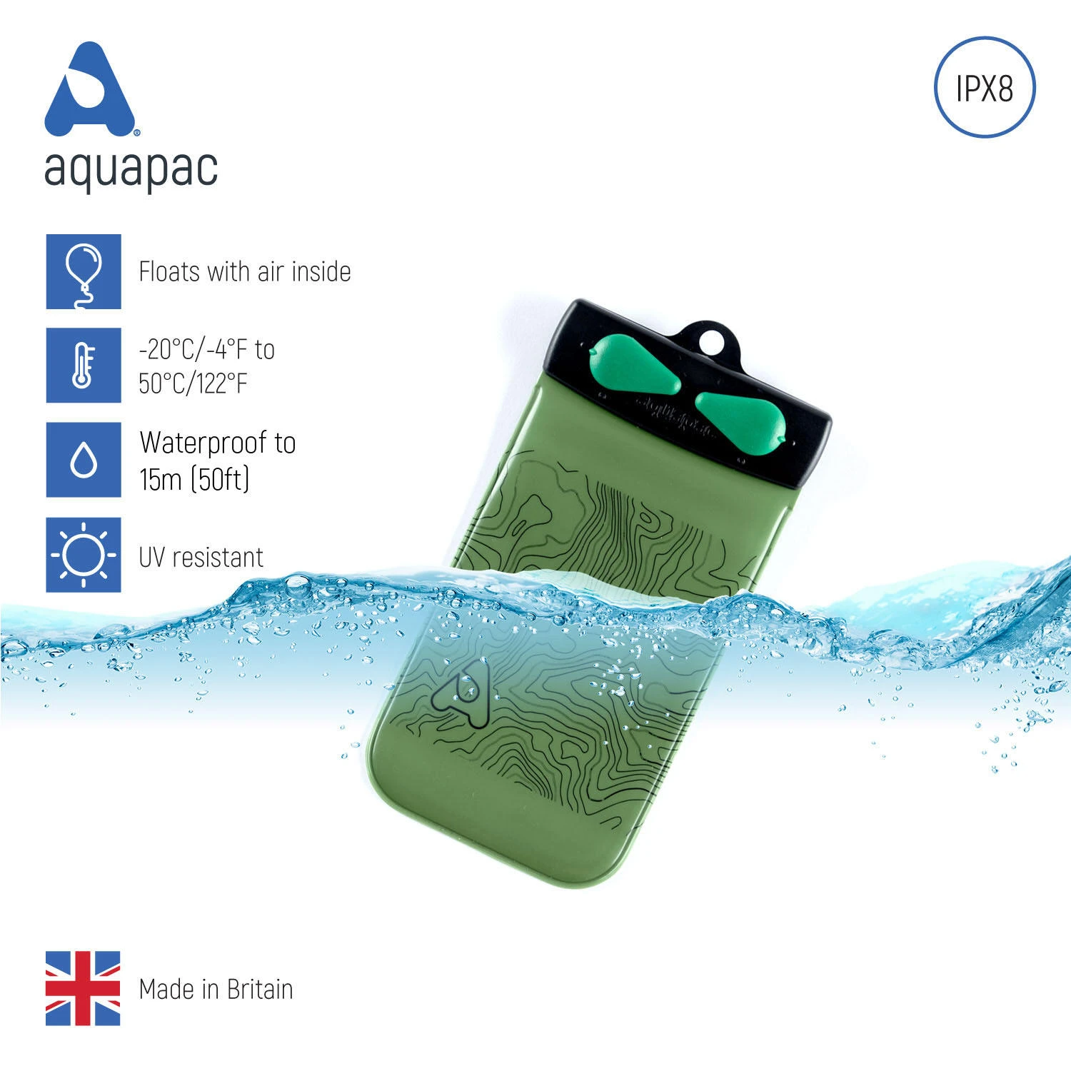 Made with Biodegradable TPU. Designed and Manufactured in the UK by Aquapac.