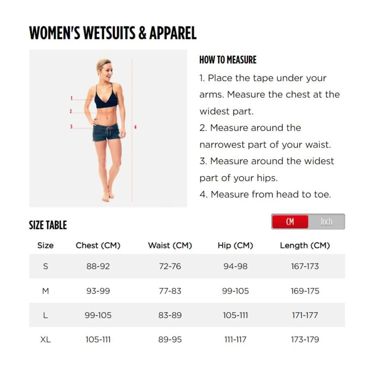 To make the most of the features of your wetsuit, it is necessary to choose the correct size. A surfing wetsuit should be a very tight fit and there should be no visible folds. When dry, it is perfectly normal to feel like it is too tight, this discomfort disappears as soon as the wetsuit gets wet. If you choose a wetsuit that is too big, folds will appear, you will experience irritation and thermal insulation will be reduced (letting in water).