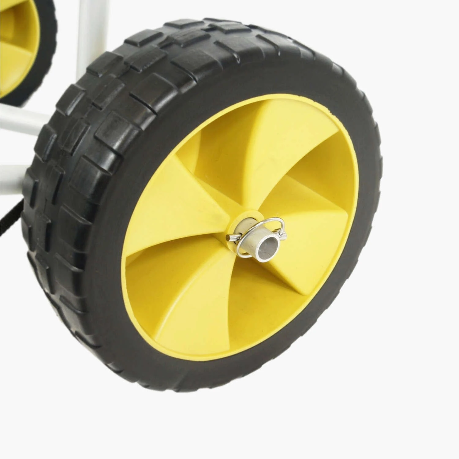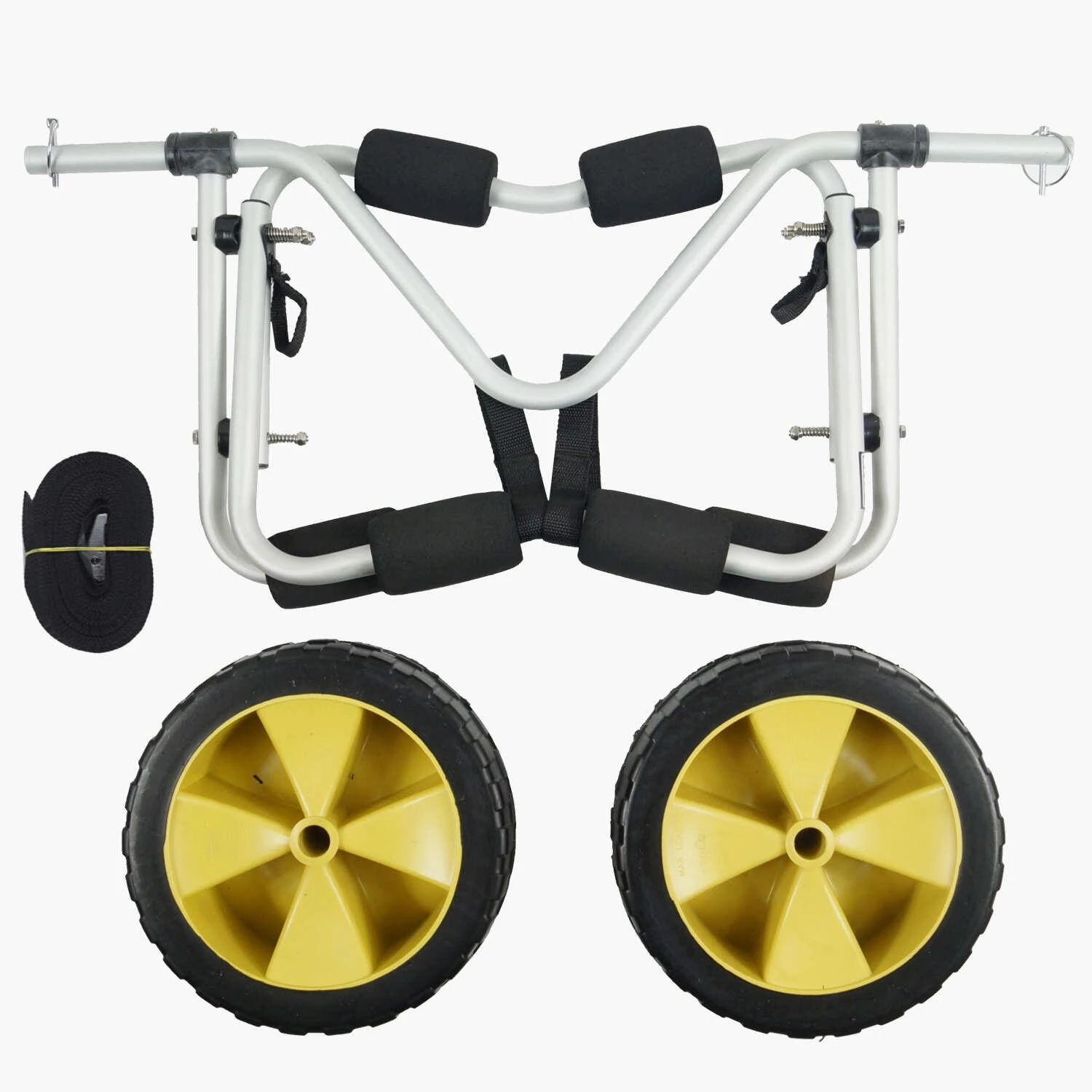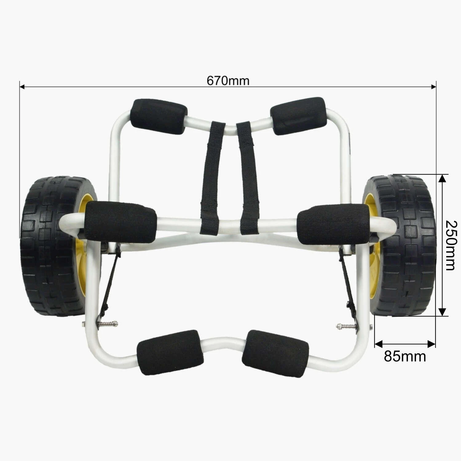 The wider kayak wheels give excellent support in soft ground such as sand or wet grass and is less likely so sink in than rounder tyres.