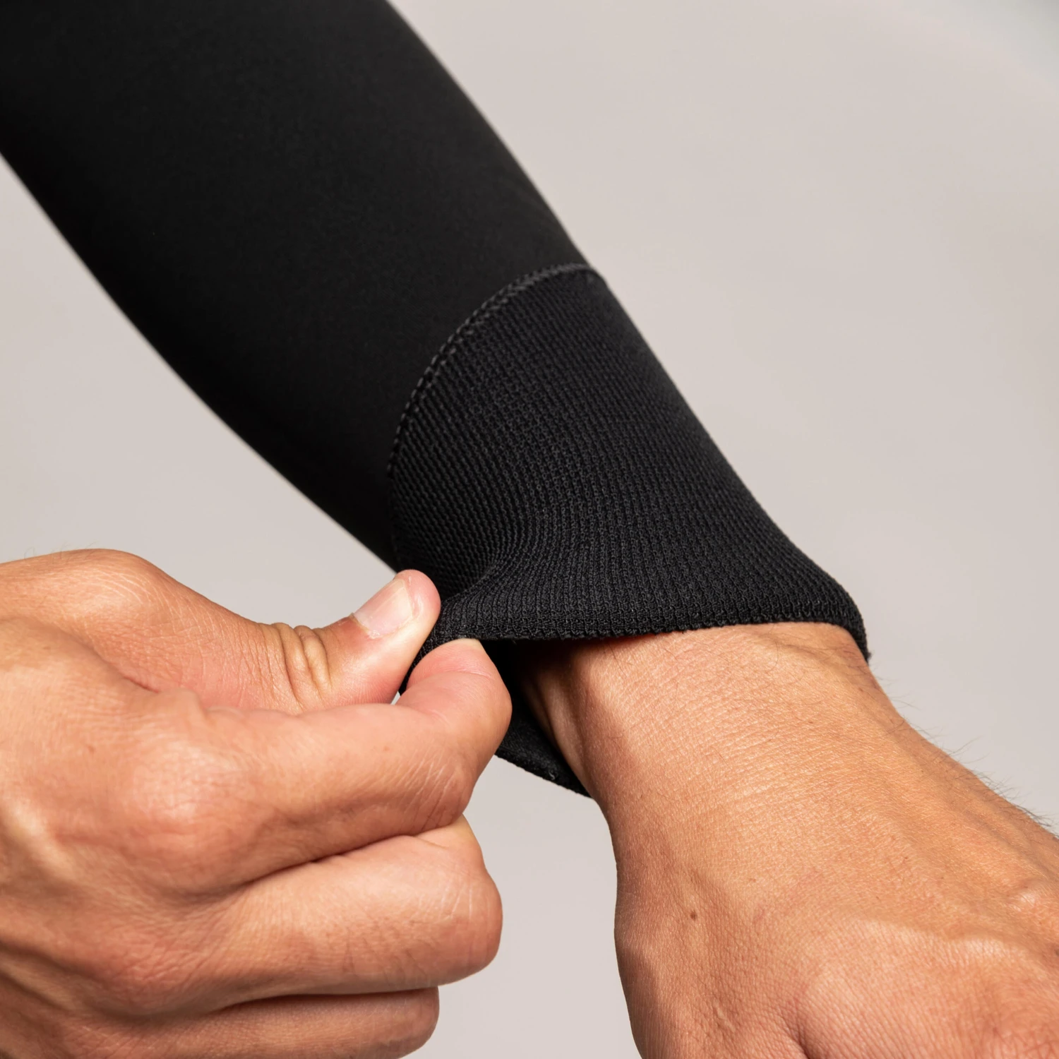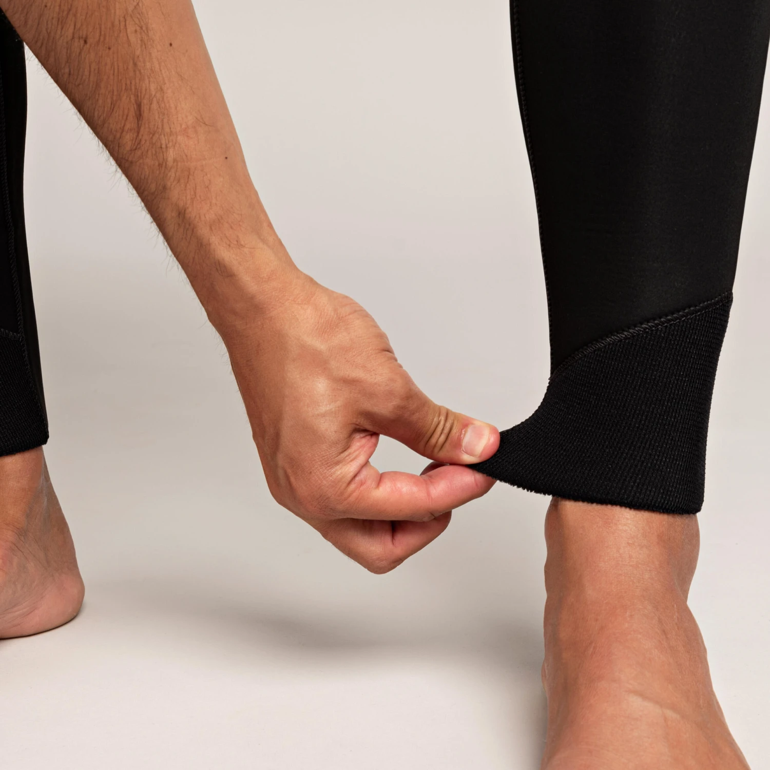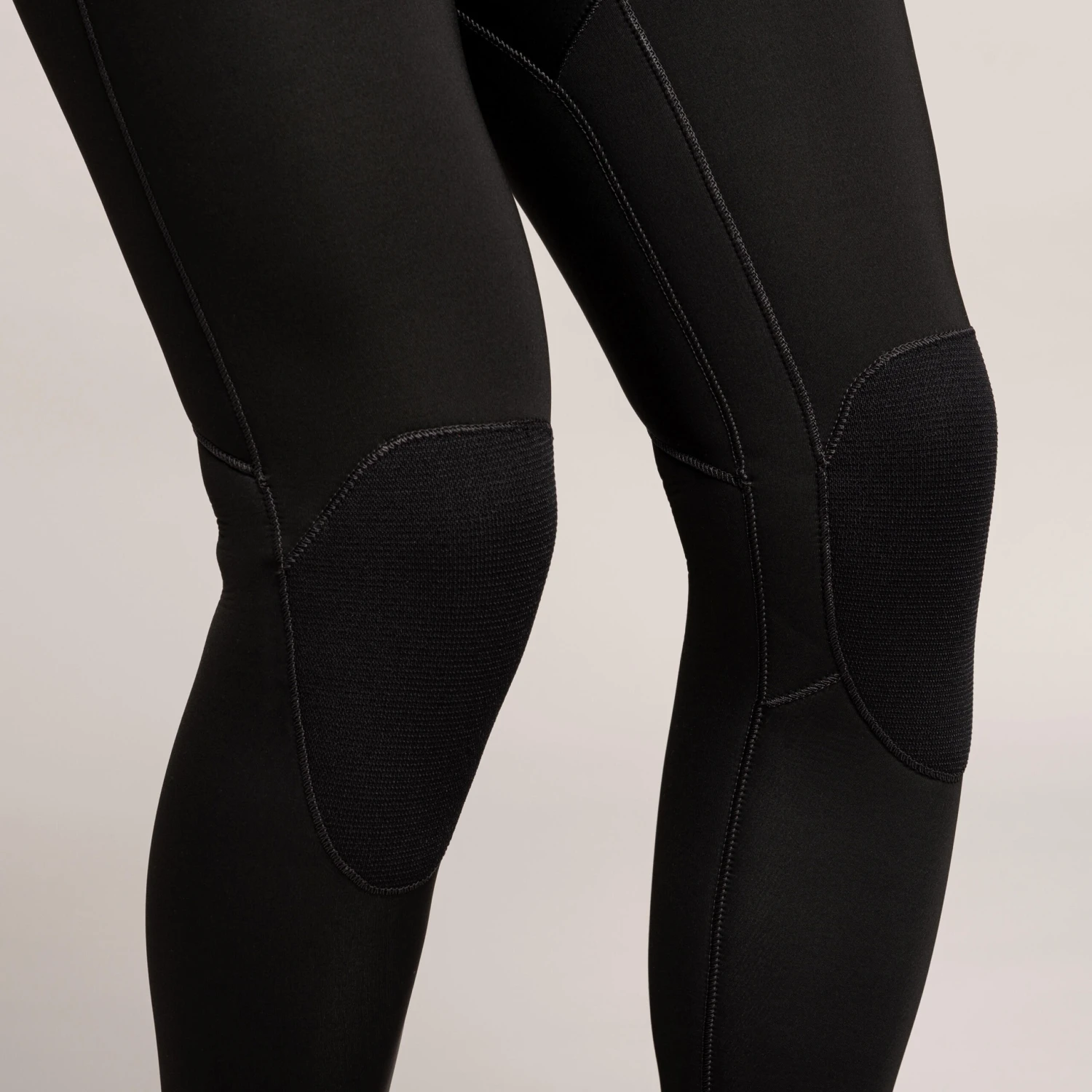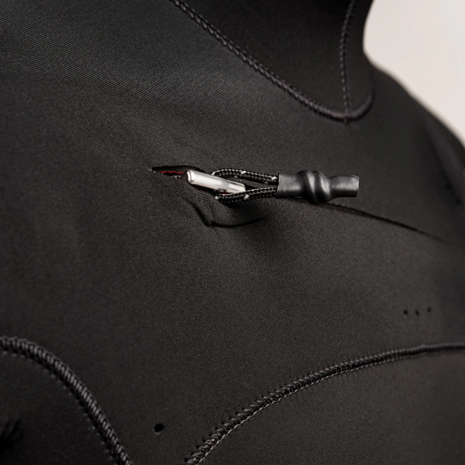 The fastening system with a front zip ensures freedom of movement while providing a better watertight seal than a traditional back zip. The zip slider is made of stainless steel to withstand exposure to salt water.