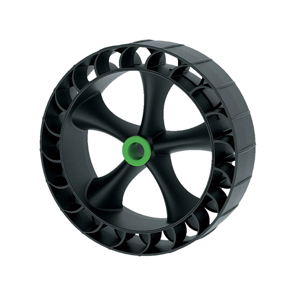 SandTrakz puncture free wheels mimic this track system, the outer rim compresses when in use giving a longer track length. On soft sand this reduces how hard you have to pull to move your trolley by more than half compared to standard puncture free Kiwi Wheels*! In fact the SandTrakz system is so effective we think it’s better than balloon wheels!