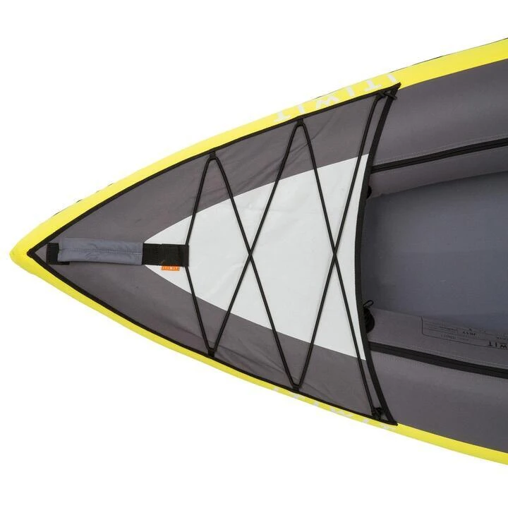 Accommodates 1 beginner in calm water for 2 to 3 hours. An inflatable kayak with 1 raised adult seat for paddling comfort. Stable and reassuring. This item has been checked and if necessary refurbished by our expert team of specialists so it can be sold online and in our stores as a Second Life product at a discounted price.