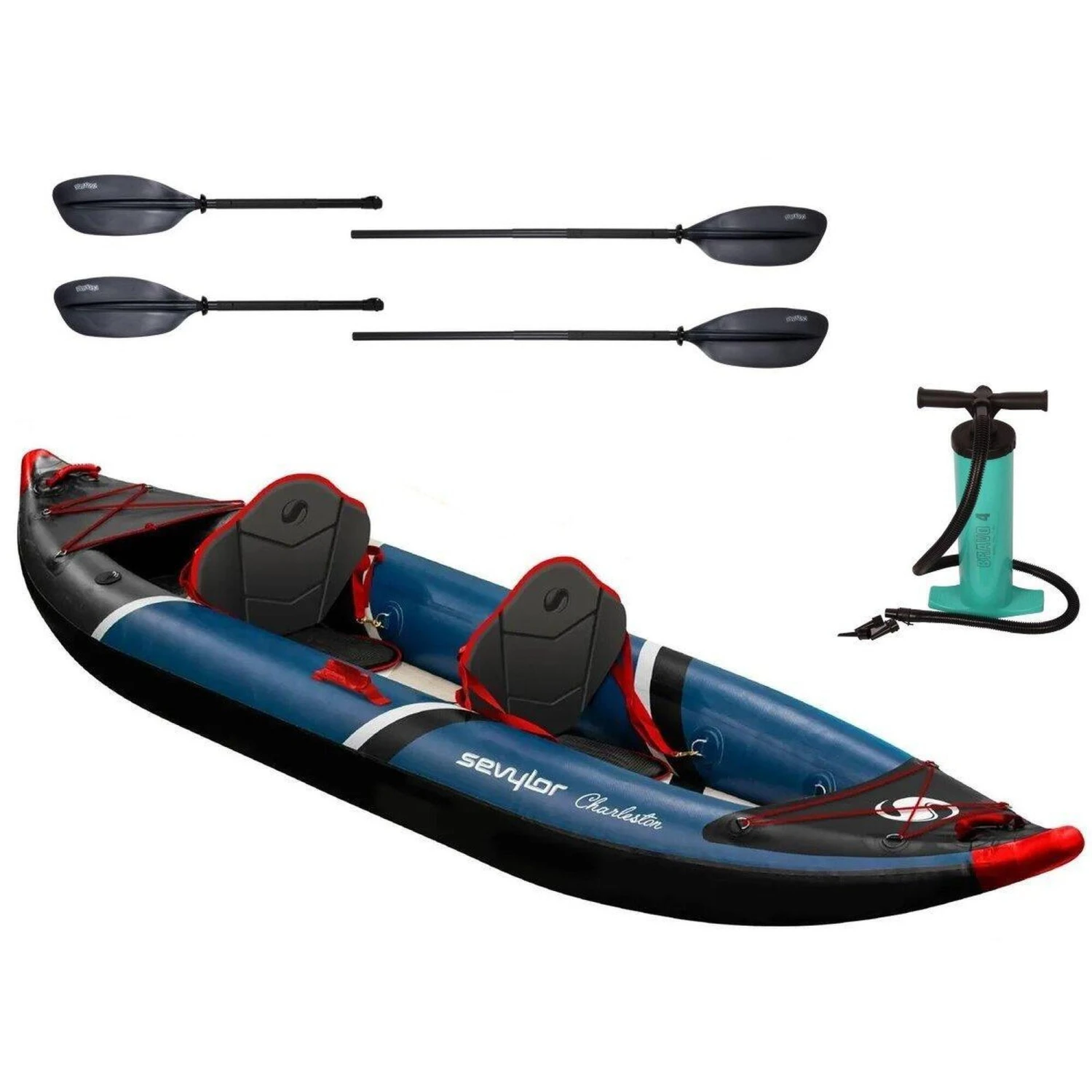 The Sevylor Charleston 2 Person Kayak with 2 Fibreglass Paddles & Stirrup Pump offers excellent stability and maximum comfort, making it the ideal companion for long days of fun on the water. This kayak is designed with reinforced PVC materials for side chambers and walls, providing a hard shell performance that prevents leaks. The thermo-molded seats offer great comfort and efficient paddling.