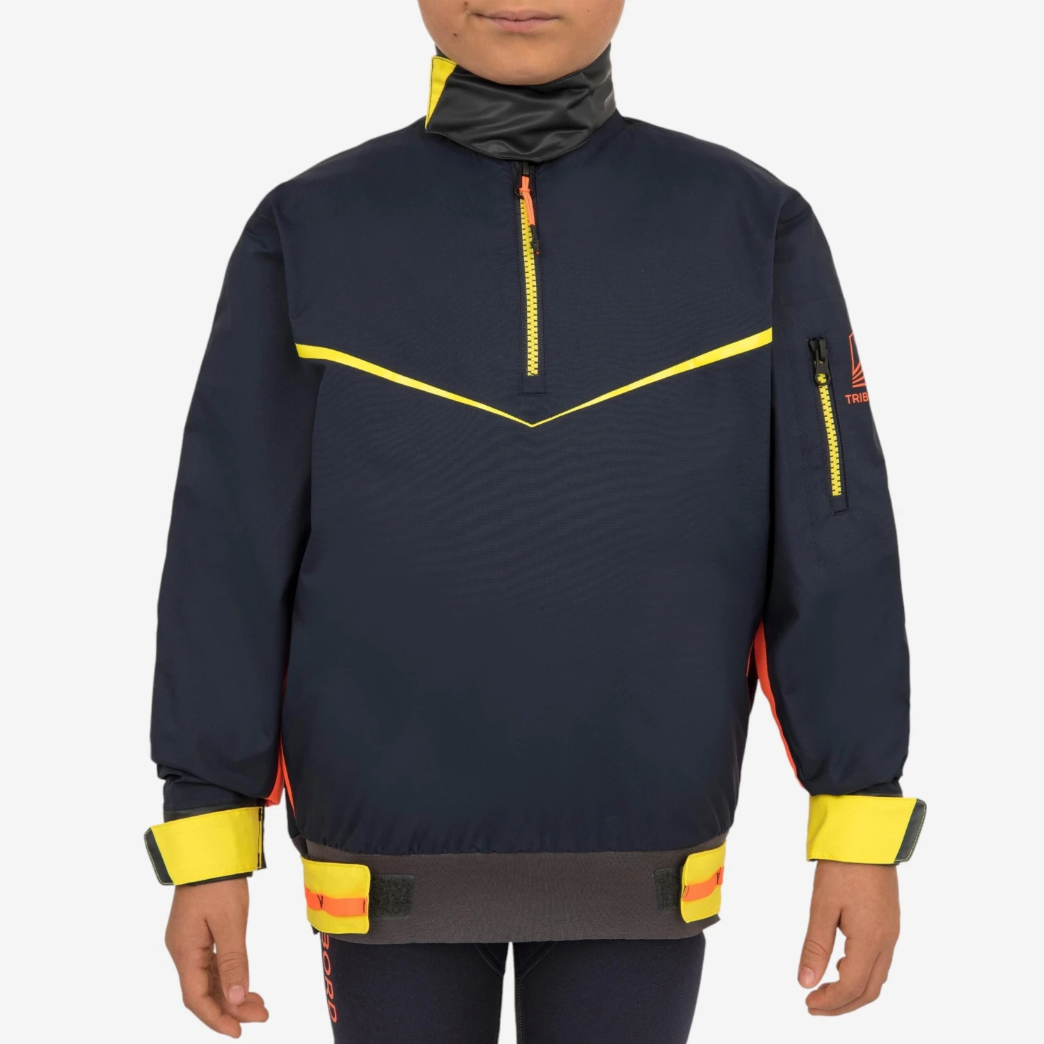 Our Tribord designers—and fellow sailors—designed this windproof smock for regular dinghy/catamaran sailing in cool weatherThis windproof and waterproof smock will give your child effective protection from the elements and freedom of movement while they sail.