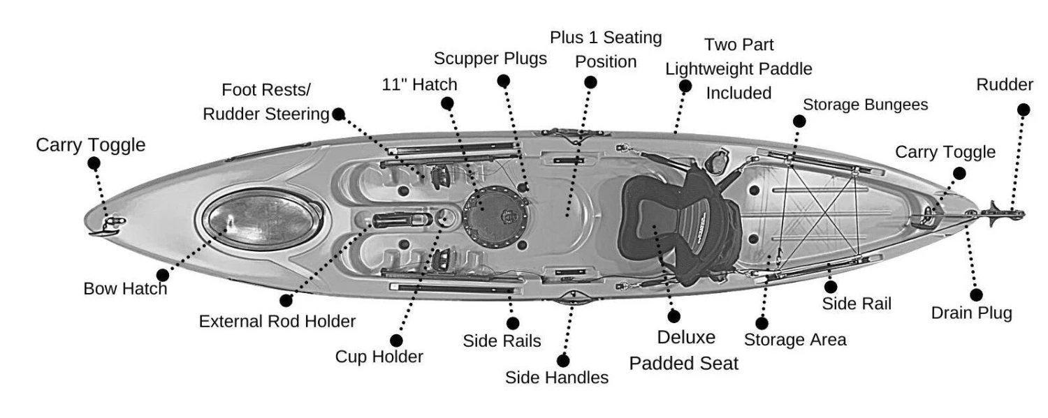 Great build quality and very comfortable seats. However, it’s a bit heavy to carry solo, especially when transporting to the water.