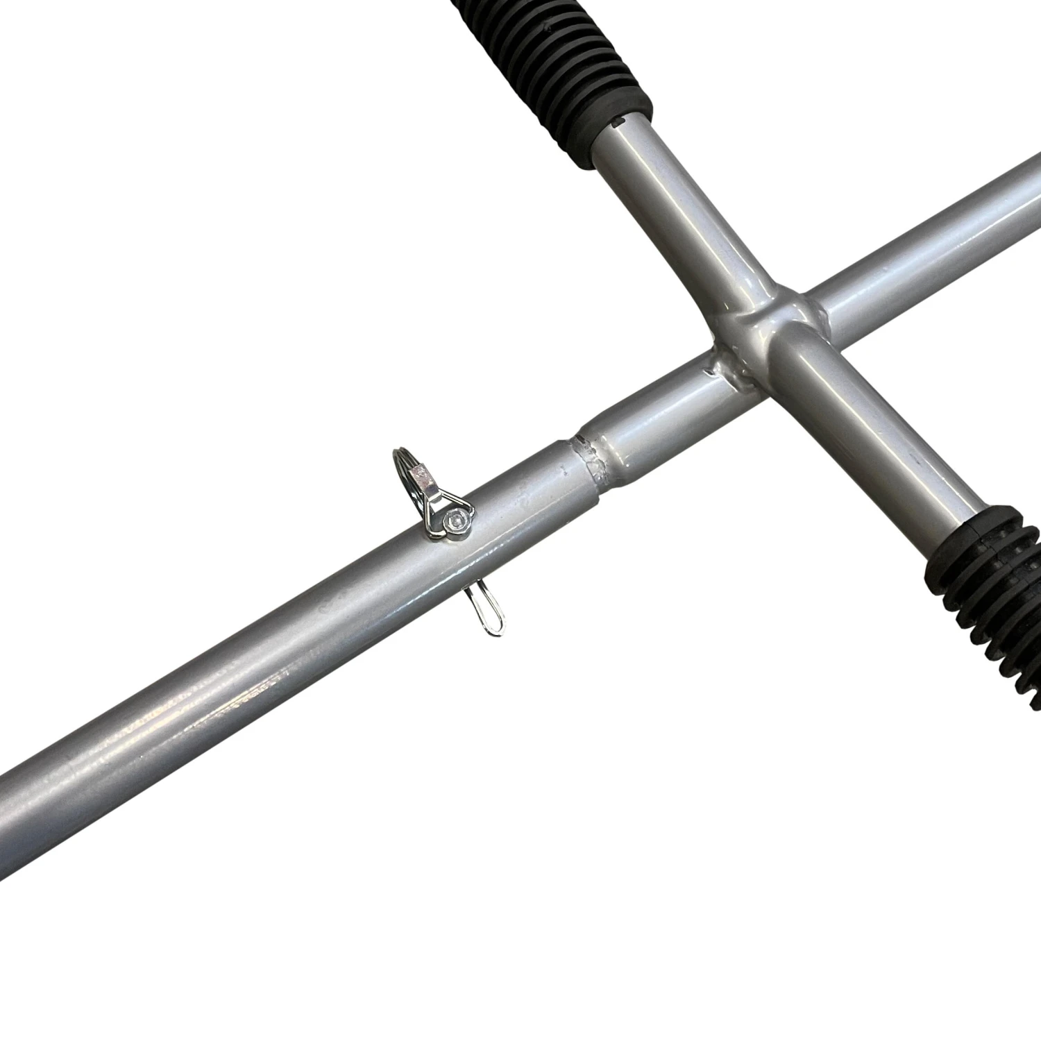 This trolley can be pulled by hand using the handle provided for this purpose, which can be removed and swapped for the accessory used to hitch it to a bicycle if required.