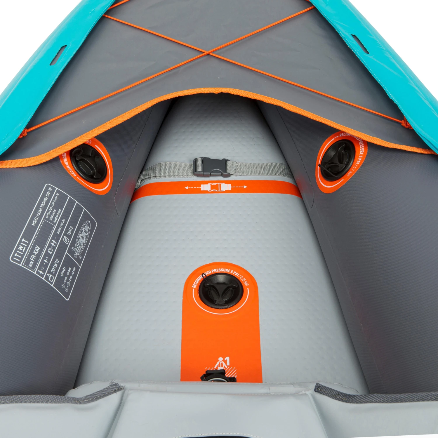 The deck of the Itiwit 100+ is based on the same dropstitch construction as the inflatable stand-up paddle boards. Dropstitch is a mesh made of polyester yarns between two layers of PVC. When the deck is inflated to a high pressure, the threads are stretched and the construction becomes very strong, thus avoiding any deformation.